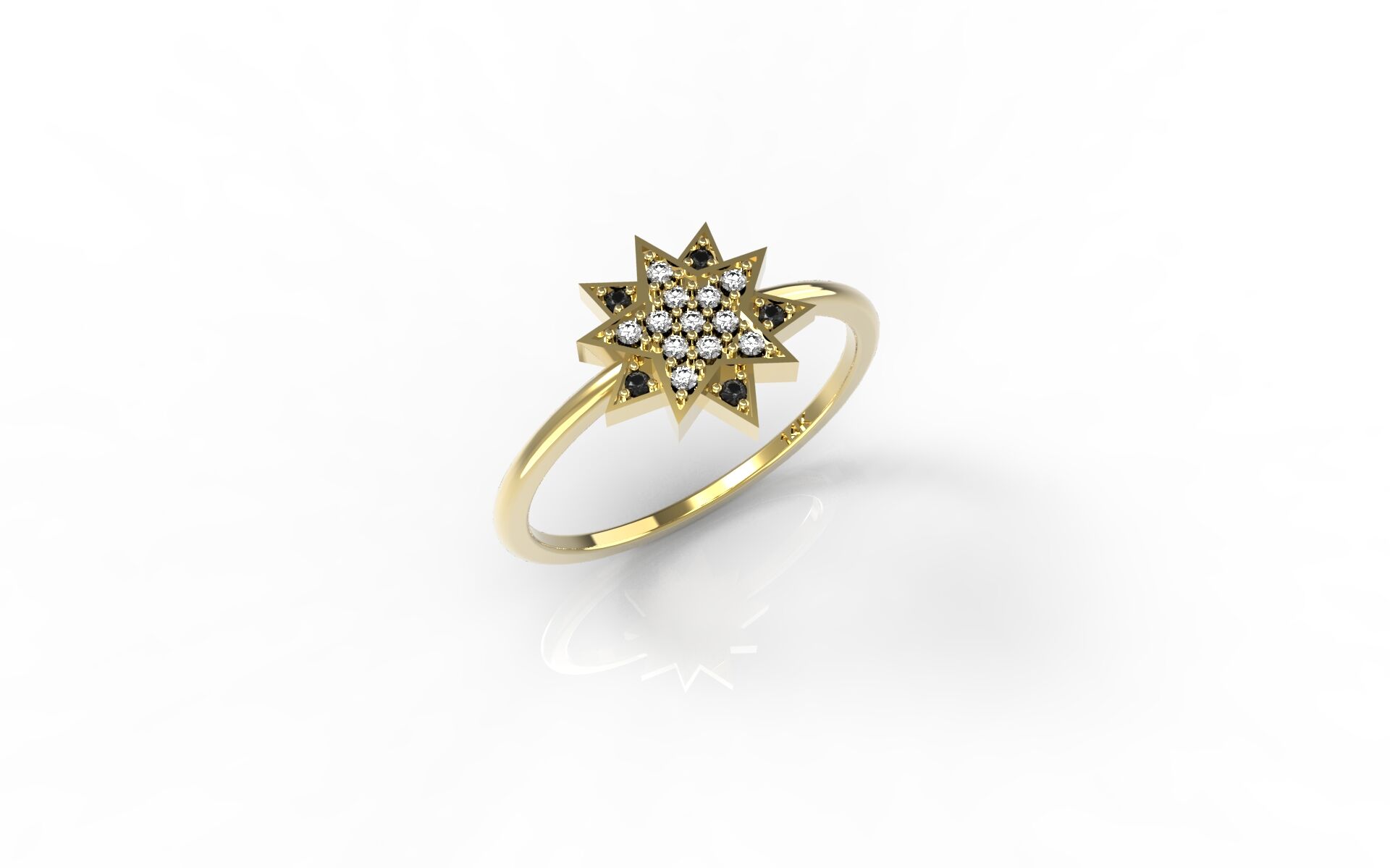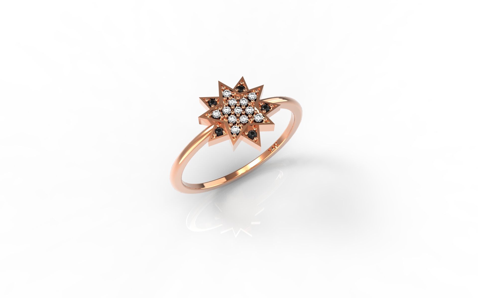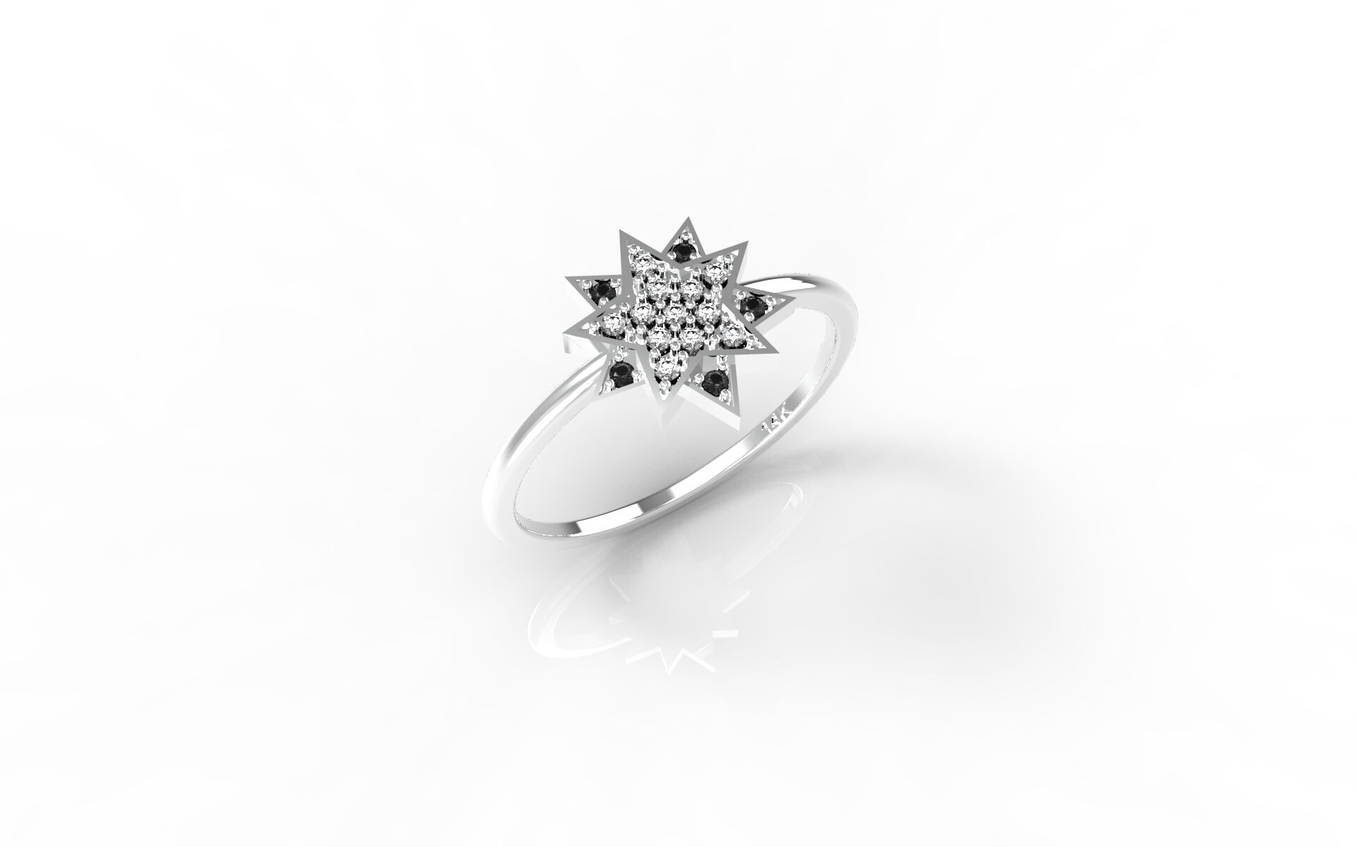 אין הרבה טבעות מיוחדות כמו הטבעת הזאת! קודם כל הצורה של הכוכב שהיא מיוחדת מאוד ומשדרגת בצורה משמעותית את הטבעת. בנוסף היהלומים השחורים שביחד עם היהלומים הרגילים הופכים את העיצוב להיות משגע. הטבעת מגיעה עם 14 קראט של זהב והיא מיוצרת דרך מדפסת 3d. הטבעת זמינה בשלושה צבעים: לבן, אדום או צהוב.